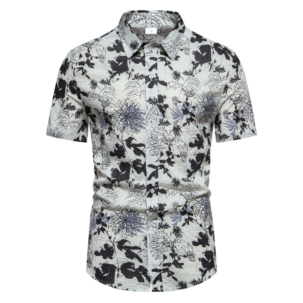 Men's Plus Size Floral Print Short Sleeve Button Down Shirt