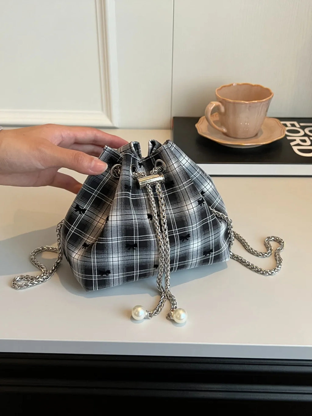 Chain Drawstring Bucket Bag