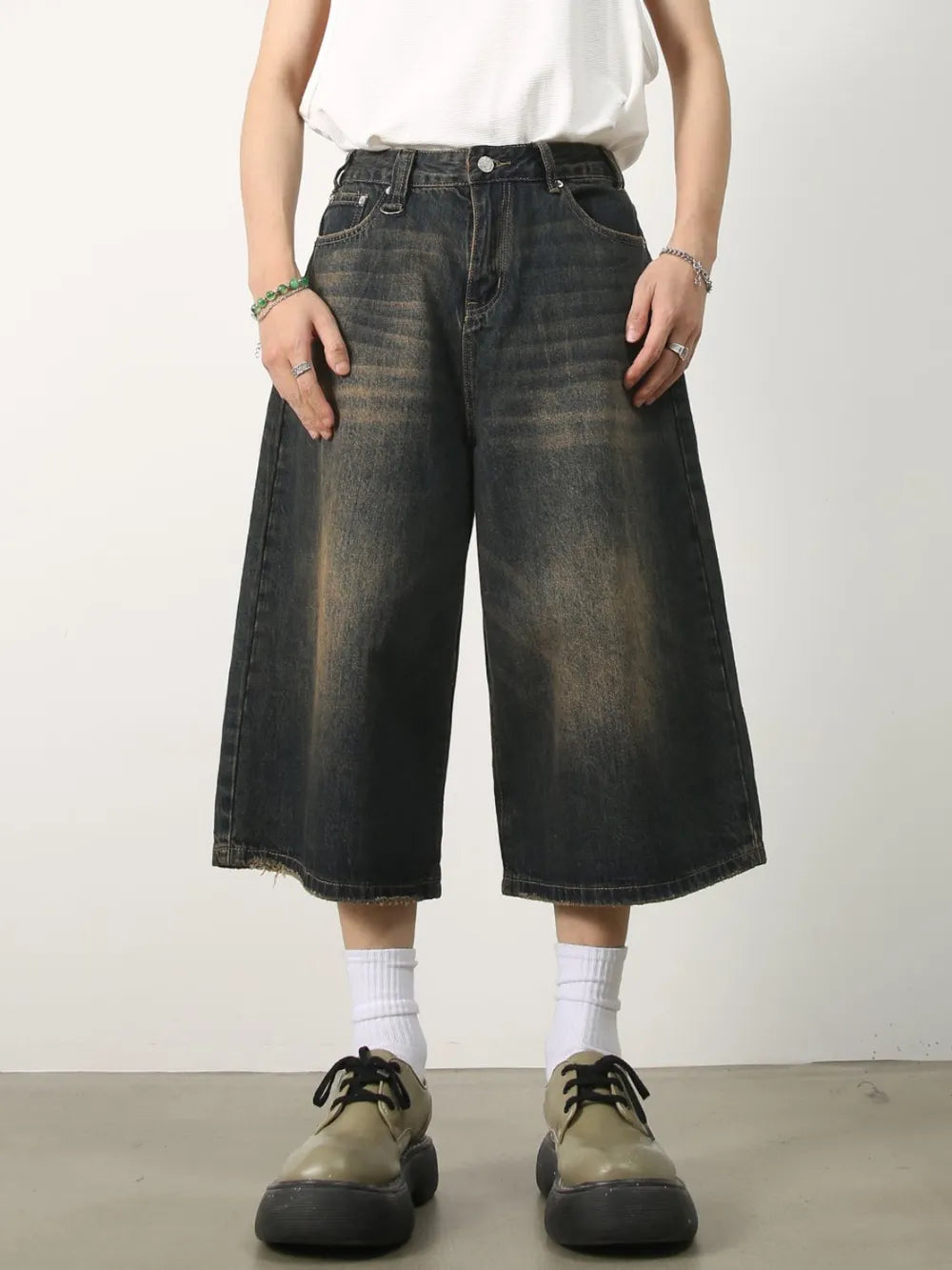 Men's Wide Leg Denim Shorts
